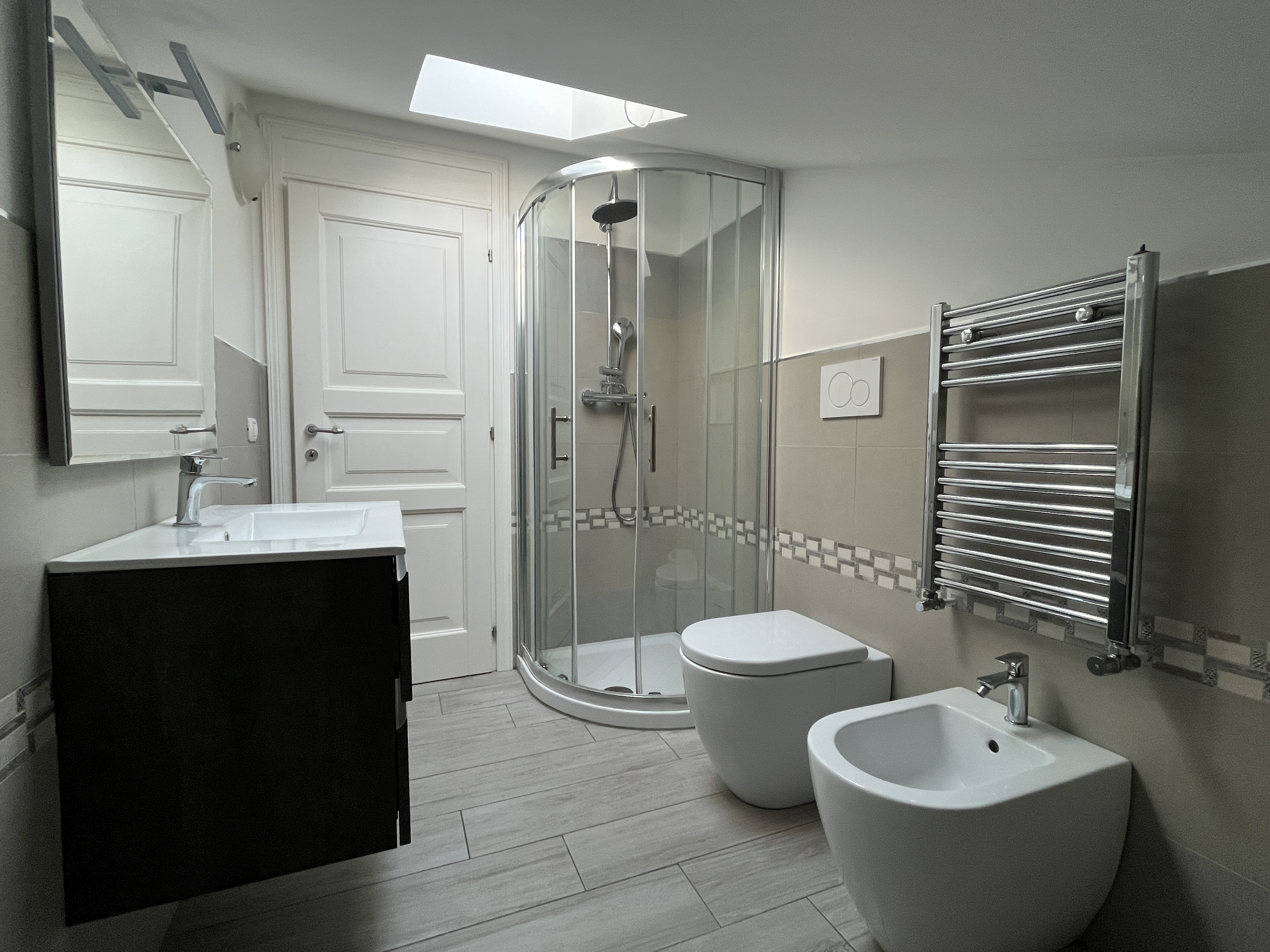Costruito con materiali di prima qualità come le finestre SCHUCO in doppio vetro/pvc di colore bianco, porte in legno artigianali bianche realizzate direttamente dal falegname, grate in ferro zincate.